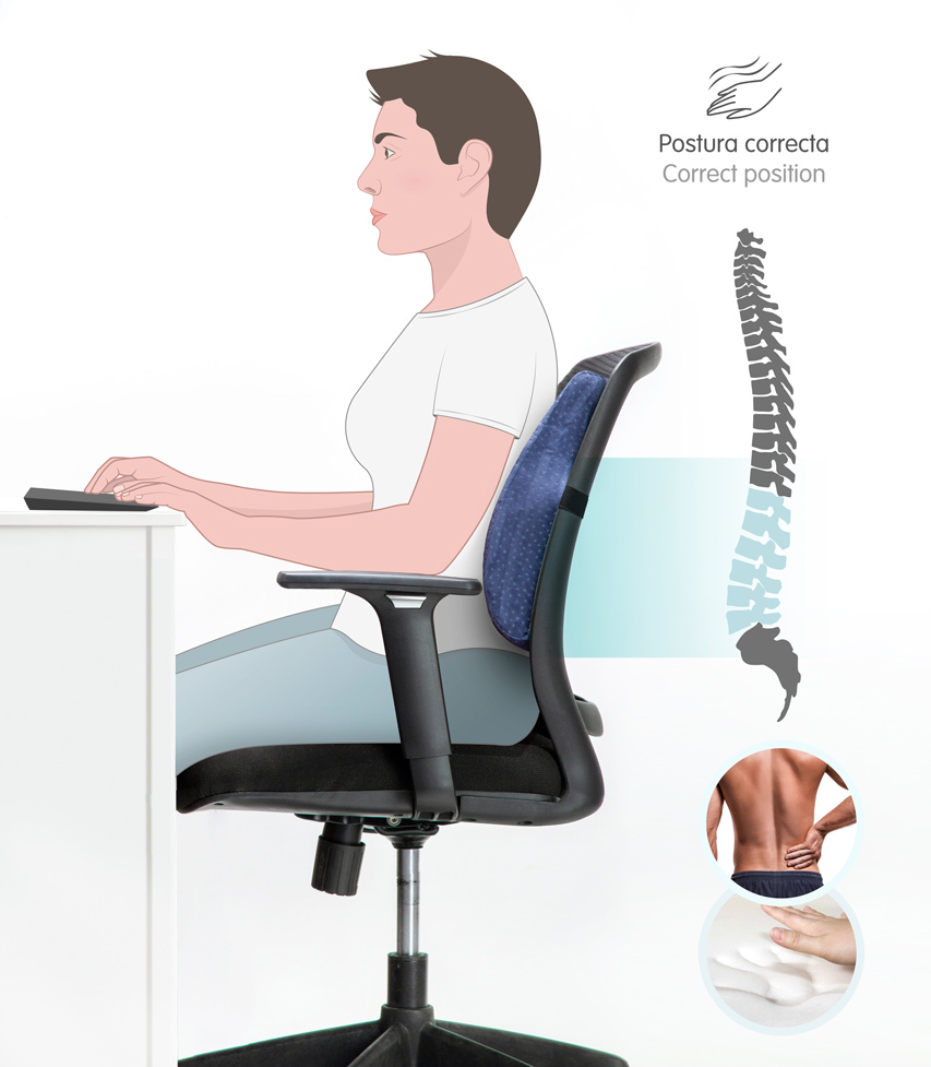 Gracias a su material viscoelástico y a su forma, ofrece gran adaptabilidad aliviando los dolores lumbares.