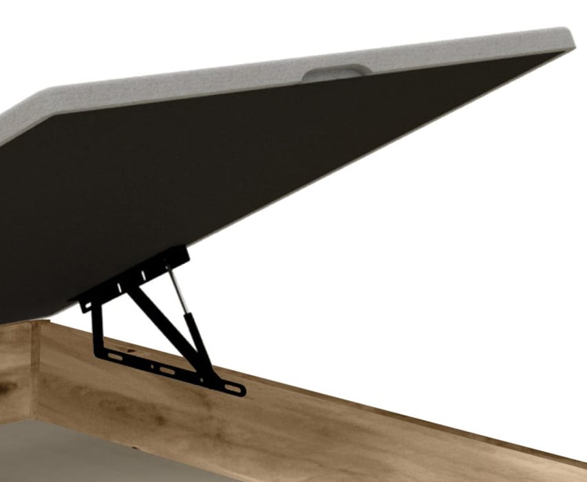 La tapa presenta un bastidor de tubo de acero de 40x30 mm, así como un sistema de apertura por resorte. Tirador de rebaje incluido en la tapa. El canapé está disponible en 2 acabados de madera: natural y ártico.