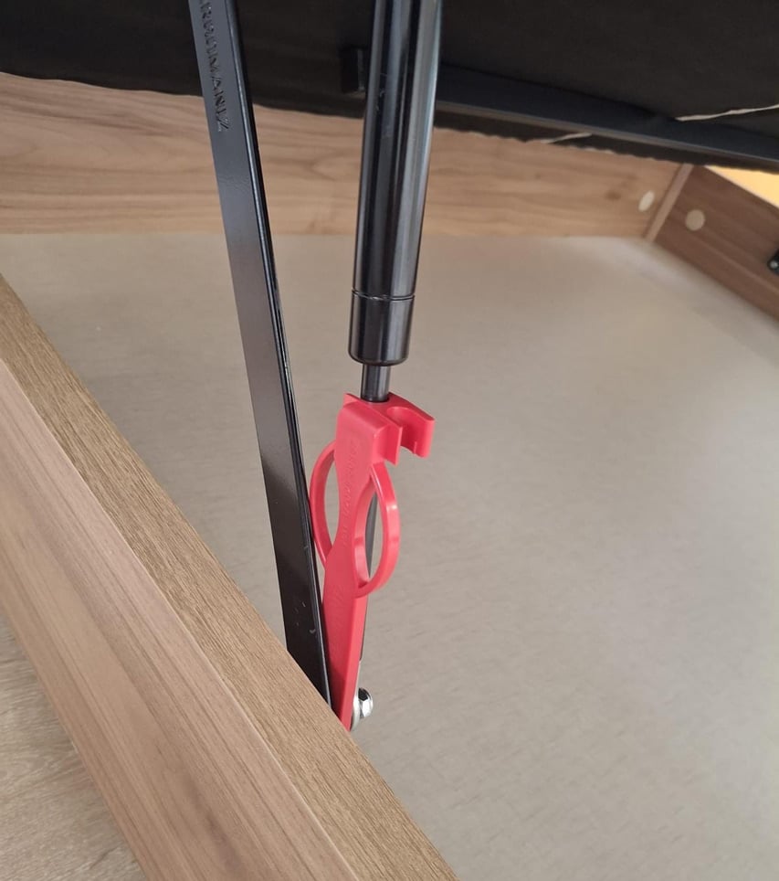 Todos los canapés abatibles incluyen como regalo un sistema de seguridad anticaída de la tapa. Son muy fáciles de colocar y aseguran que la tapa con el colchón encima, al elevarla, se mantendrá fija arriba, sin que nadie la tenga que sujetar.