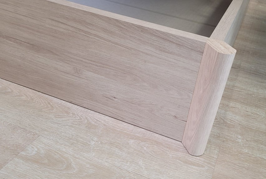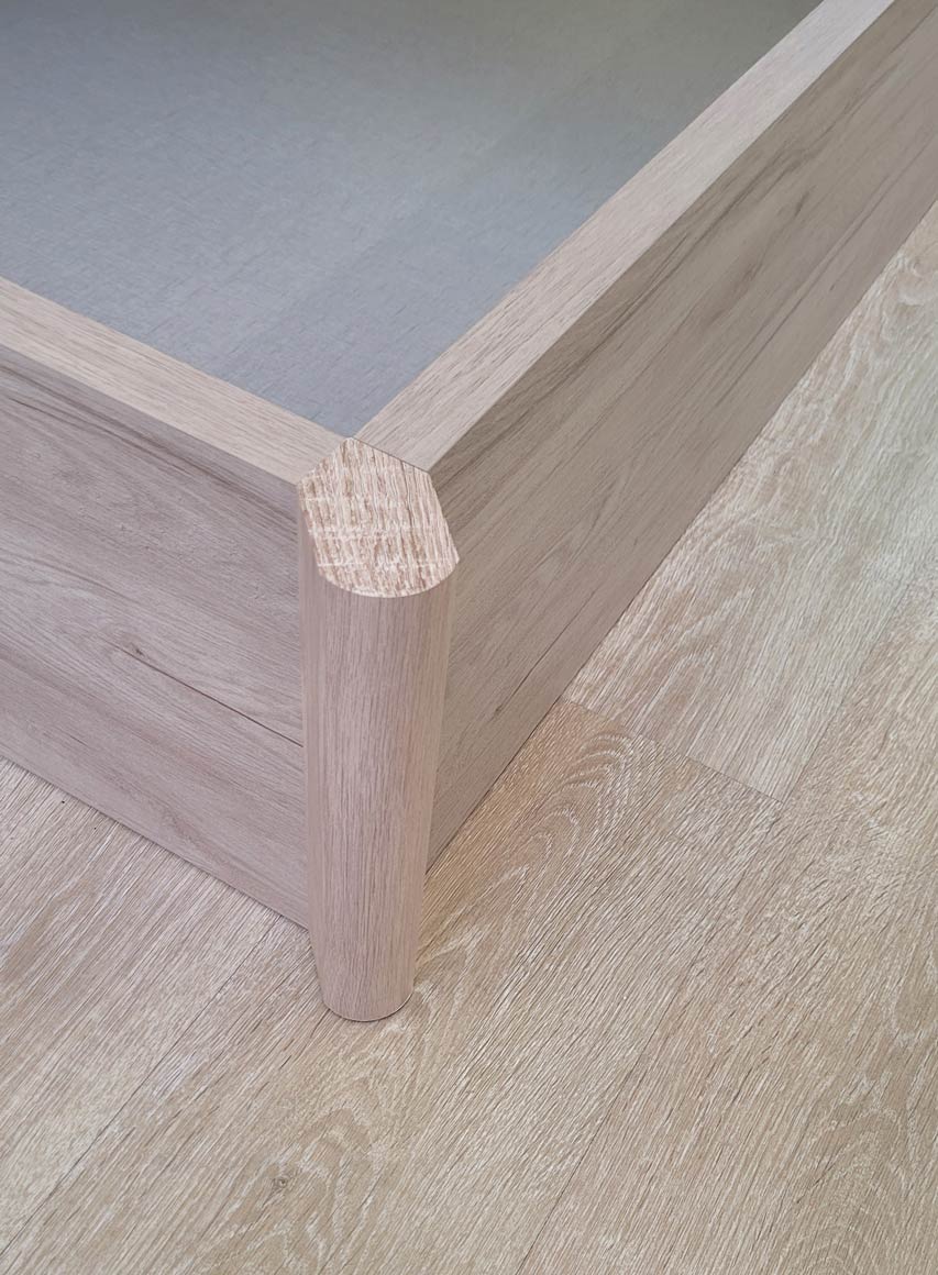 El canapé descansa en el suelo con unas gomas antipolvo que garantizan un perfecto sellado.