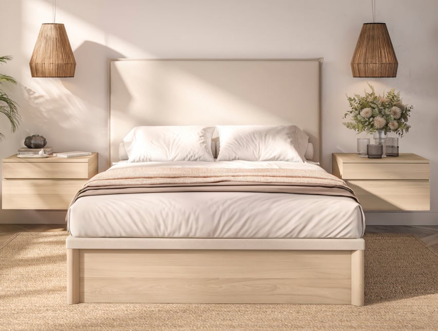 Disponible en 5 acabados de madera: Nórdico, Ártico, Nogal, Blanco y Natural. El tejido del perímetro y el tejido 3D transpirable a juego con el color de la madera.