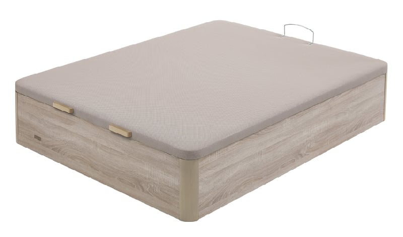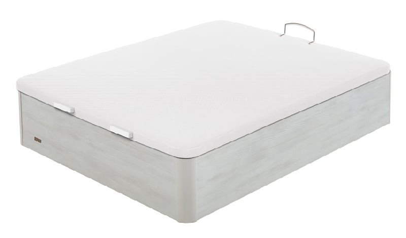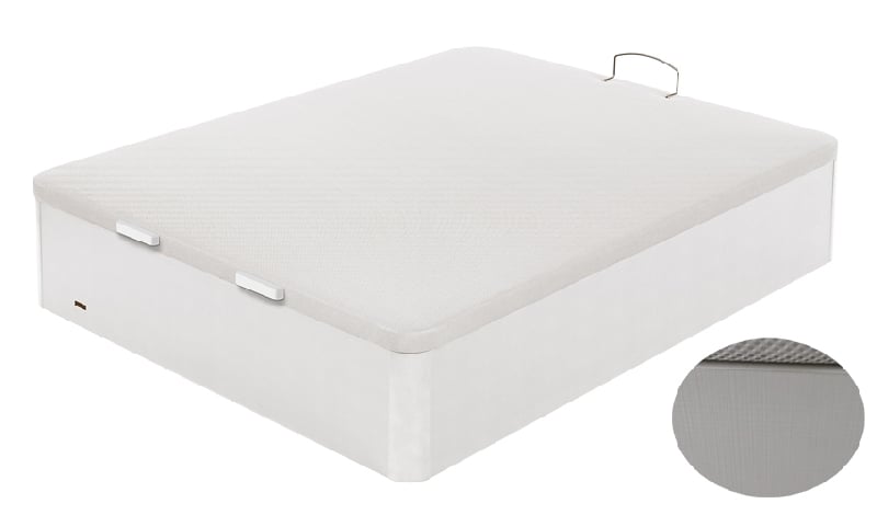Canapé abatible 25 mm Space + de Flex. Madera de 25 mm. de grosor con tapa tapizada en tejido 3D transpirable. Máxima capacidad interior de 31 cm. de almacenamiento. Disponible en 6 colores de estructura: Blanco, Natural, Cerezo, Wengué, Blanco Veta, Gris y Nogal, todos ellos con el veteado característico de la madera.