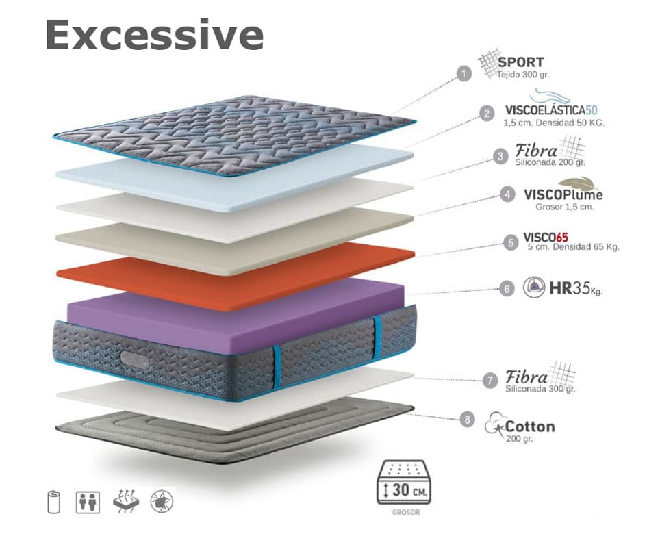 Las siguientes son las características del colchón Excessive