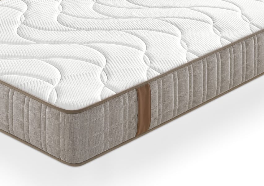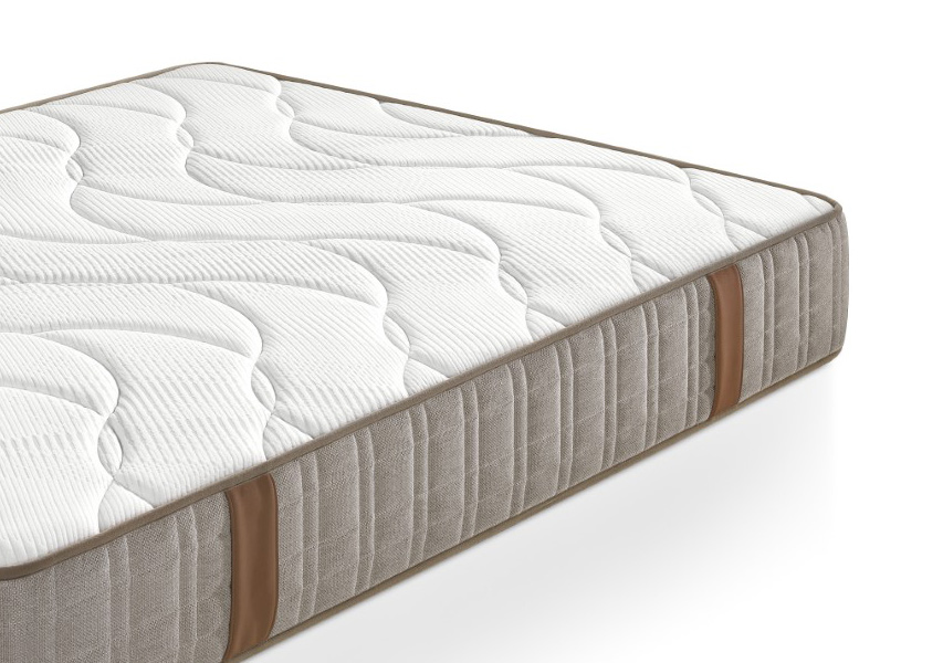 Tapizado con Tejido Quality, de alta calidad y suavidad. Tiene una firmeza 6 sobre 6, lo categorizamos como muy duro y un grosor de 27 cm.