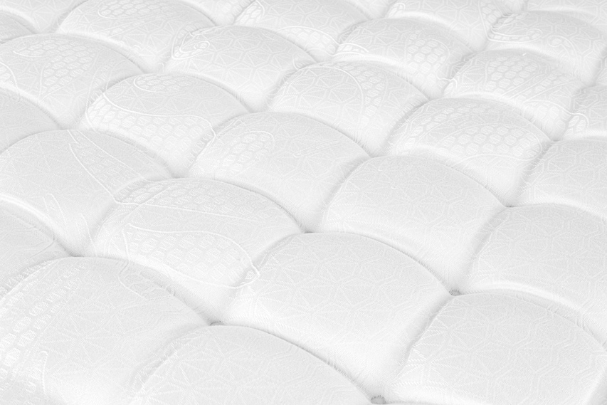 Tapizado en la cara superior con tejido Jacquard de alta calidad con tratamiento Relax Beauty con colágeno. En la cara inferior con tejido Strech, transpirable. Tiene un grosor de 33 cm. y es un colchón muy agradable y confortable.
