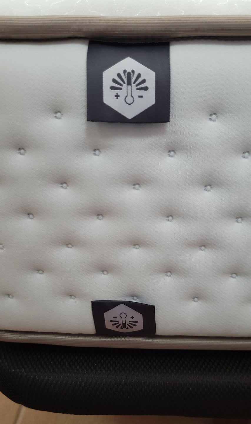 Tapizado con tejido Jacquard, elástico y suave, con tratamiento Hygienic frente a ácaros y bacterias. Tiene una firmeza 4 Adaptable sobre 6, por que se considera un colchón medio-duro y un grosor de 32 cm. Gracias a su tecnología recoge muy bien las zonas de hombros y piernas.