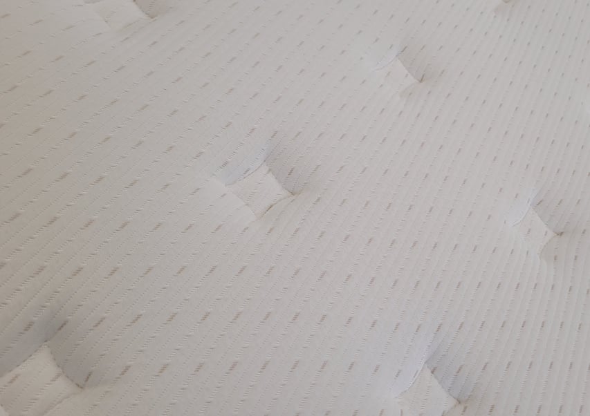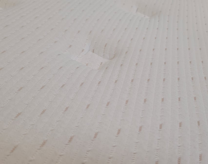 Tapizado en la cara superior con tejido Stretch, elástico de gran calidad que proporciona confort y adaptabilidad; y en la cara inferior con tejido 3D transpirable. Tiene una firmeza de 5 sobre 6, por lo que lo consideramos duro y un grosor de 27 cm. Por sus materiales y características es adecuado para durmientes de hasta 120 Kg.