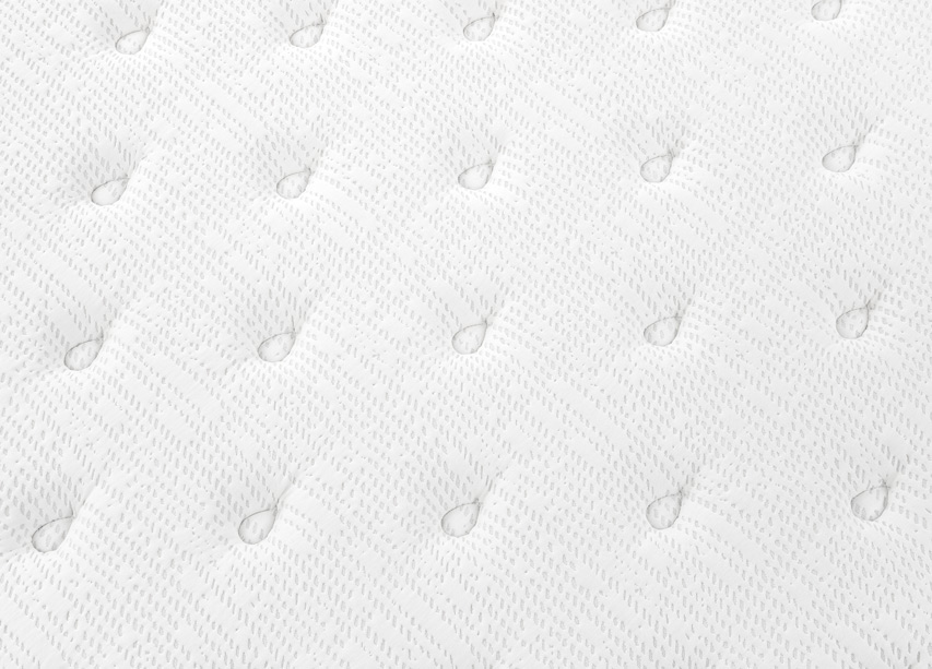 Tapizado en la cara superior con tejido con Bambú, suave y duradero; y en la cara inferior con tejido 3D transpirable. Tiene una firmeza de 4 sobre 6, por lo que lo consideramos medio-duro y un grosor de 27 cm. Por sus materiales y características es adecuado para durmientes de hasta 120 Kg.