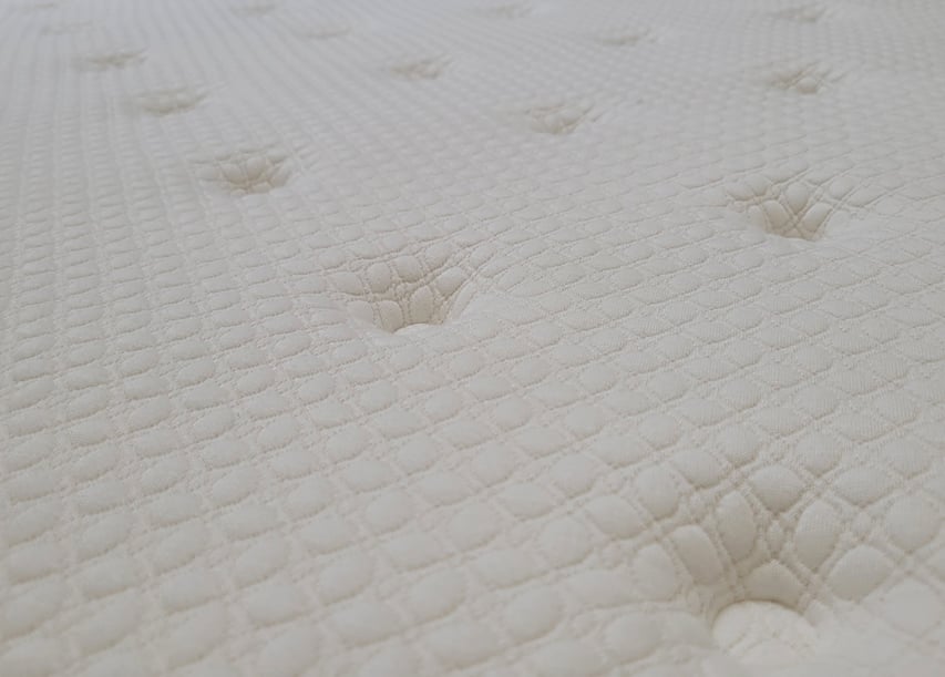 Tapizado en la cara superior con tejido Viscosa natural, que aporta frescor y suavidad; y en la cara inferior con tejido 3D transpirable. Tiene una firmeza de 4 sobre 6, por lo que lo consideramos medio-duro y un grosor de 29 cm. Por sus materiales y características es adecuado para durmientes de hasta 120 Kg.