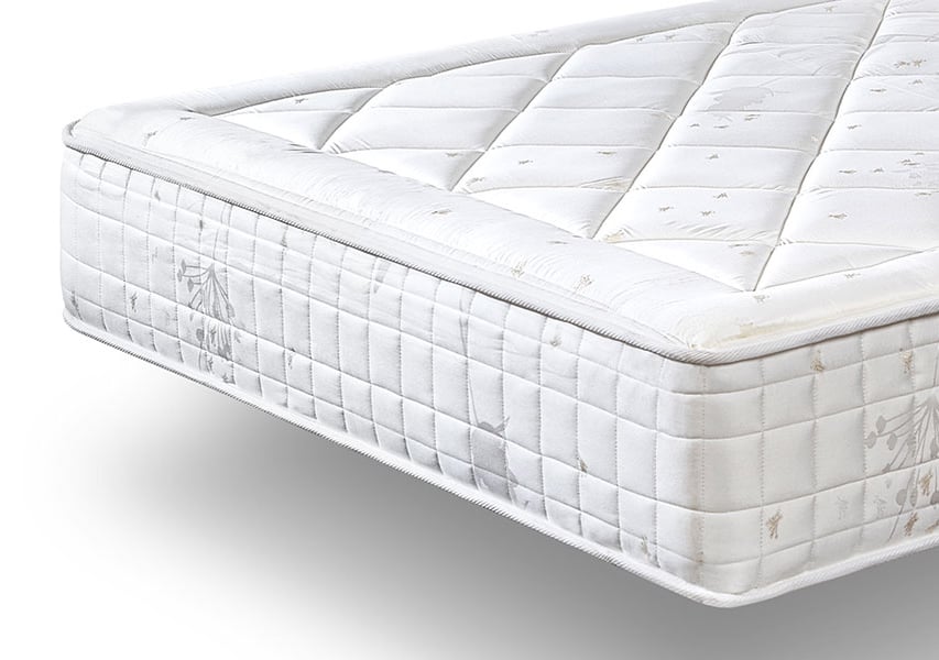 Tapizado con tela viscosa 100%, que aporta una sensación de frescor al contacto con el colchón. Transpirable e higiénico, ya que cuenta con el tratamiento Sanitized que evita la proliferación de hongos, ácaros y bacterias. Es un colchón de alta gama, con materiales naturales que ofrecen transpirabilidad y regulan la temperatura.