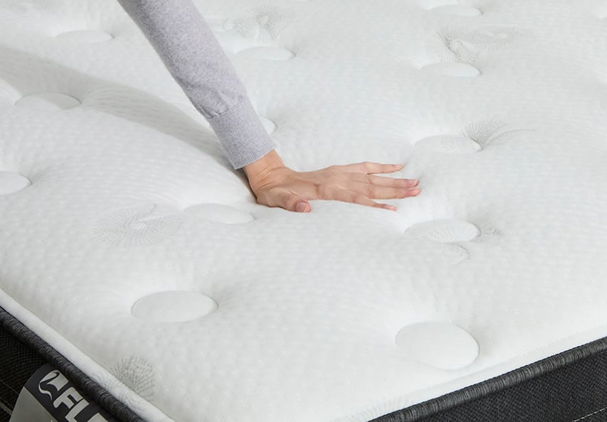Núcleo de muelles cosidos individualmente que funcionan como amortiguadores totalmente independientes, absorbiendo el peso y el movimiento sin transmitirlo al resto del colchón.