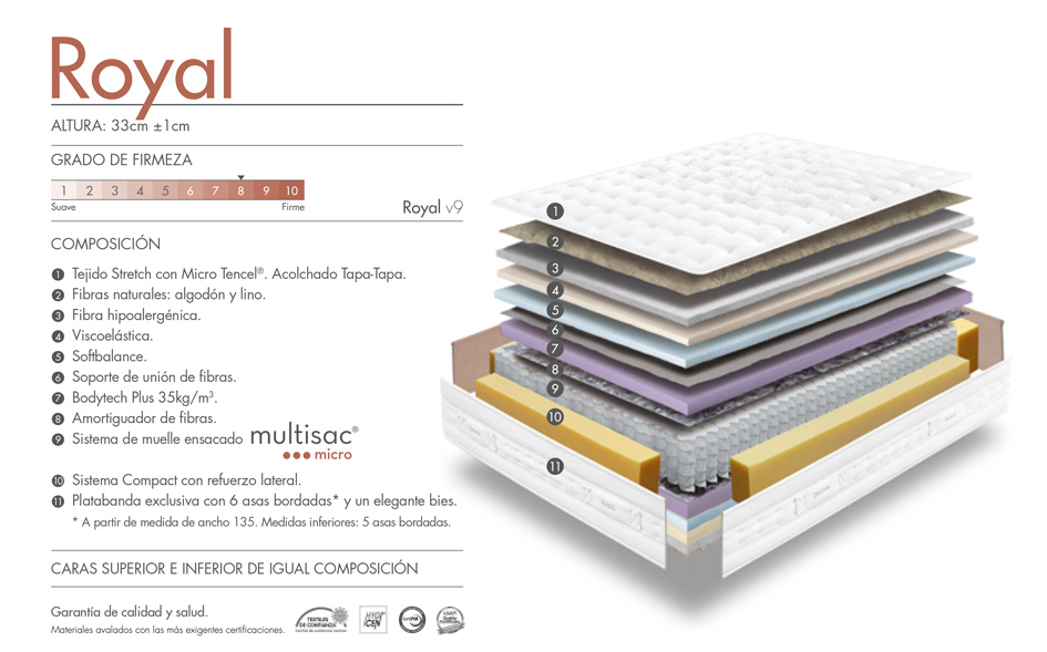 Su durabilidad. El colchón Royal ha sido testado por diferentes instituciones del colchón para garantizar su durabilidad.