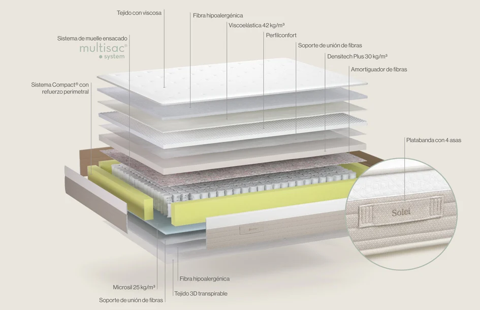 Estamos ante un colchón que ofrece un descanso de gran firmeza, de 4 sobre 6. Gracias a su núcleo con la tecnología propia de Sonpura de muelles ensacados Multisac System que aisla los muelles en bolsas independientes para ofrecer una mayor comodidad a cada uno de los durmientes. La Organización de Consumidores y Usuarios lo catalogó como uno de los mejores colchones de muelles ensacados del año 2017.