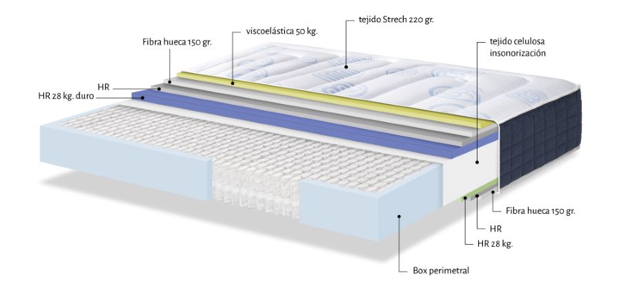 En la siguiente imagen se puede ver la composición y distribución de los distintos componentes de este exclusivo colchón de Colchones.es.
