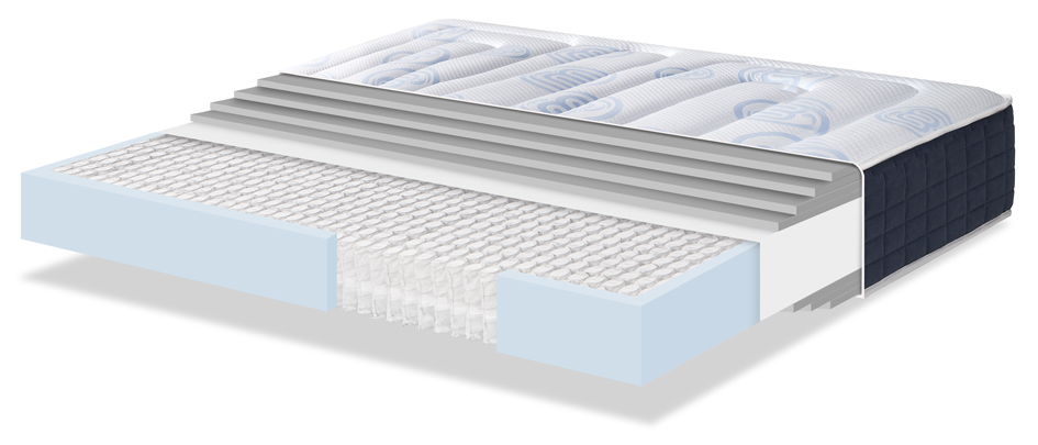 Este modelo dispone de una capa superior de 1 cm. de acolchado Viscoelástica de 50 kg. de densidad. Además cuenta con una capa de espumación HR de 1,5 cm. en ambas caras del colchón, aportando estabilidad, firmeza y adaptabilidad, así como otra capa de espumación HR de 28 Kg. de densidad en ambas caras del colchón, firme en los acolchados de la cara superior.