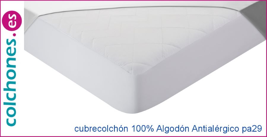 Cubrecolchón impermeable y transpirable de Pikolin Home pa29, con tejido 100% algodón antialérgico con tratamiento Triple Barrera. Relleno de fibra hueca siliconada y con faldón ajustable. Compra al mejor precio en Colchones.es el cubrecolchón 100% Algodón Antialérgico de Pikolin Home.
