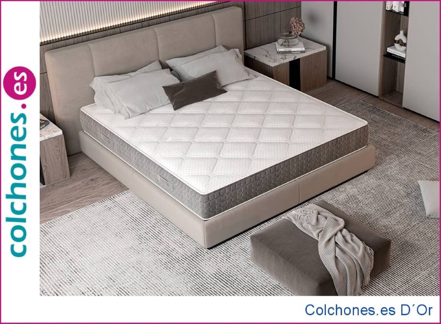 El modelo D´Or de Colchones.es dispone de muelles ensacados en su núcleo que está reforzado en todo el perímetro con el sistema Box (espumación de 8 cm). En la medida de 150×190 cm cuenta con 750 muelles independientes.