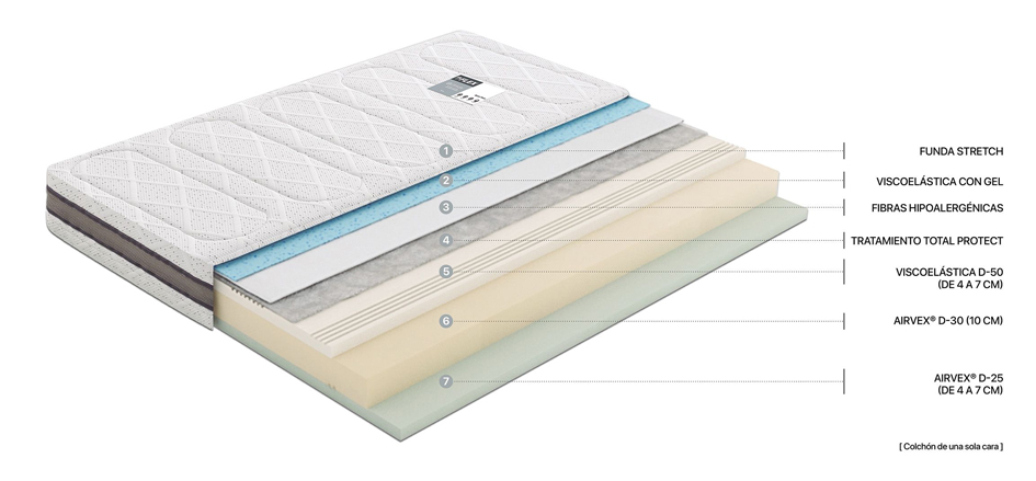 La firma Flex es una de las grandes líderes del mercado del descanso. Sus años de experiencia han dado fruto lanzando colchones con tecnologías propias. Un ejemplo de ello es la espumación Airvex, una espuma técnica de gran calidad que destaca por ser más transpirable.