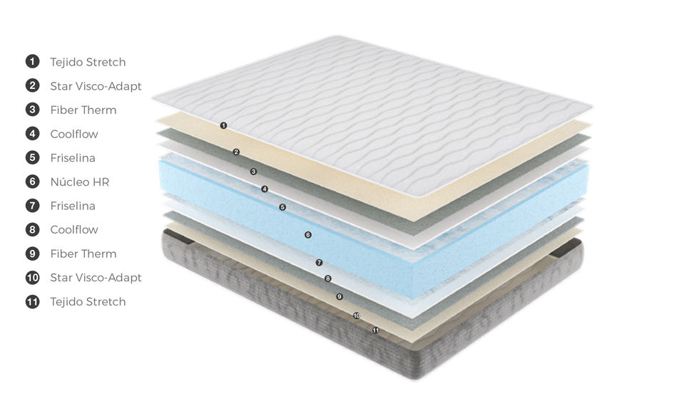 La espumación de nuestro modelo Forte XXL es HR Adapt Plus, de 35 kg/m3 de densidad. Destaca por su adaptabilidad y por su firmeza medio alta, de 4 sobre 6. El núcleo está encapsulado para una mayor estabilidad y resistencia.