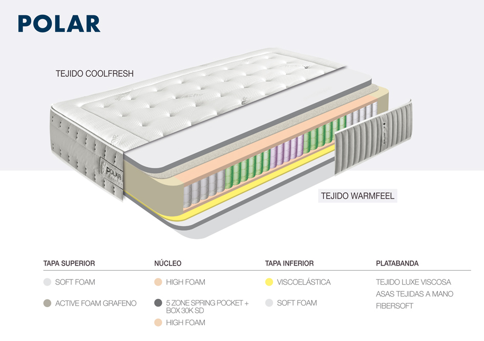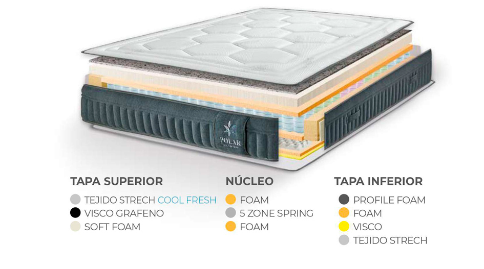 Al igual que nuestro colchón Pentatlon, el Polar Total Care cuenta con acolchados distintos en cada cara. Y el núcleo está encapsulado para mayor resistencia y durabilidad.