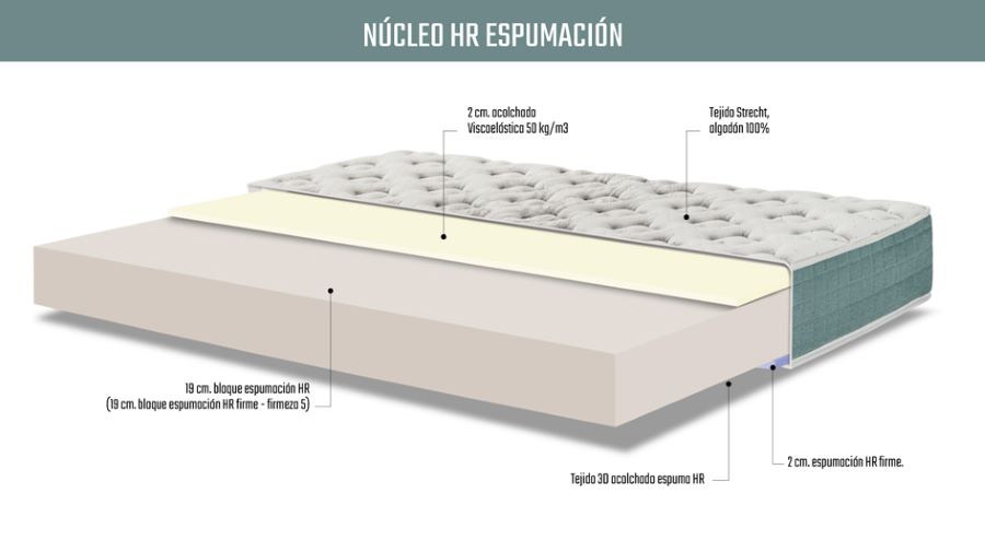 - Y el grosor en la composición de espumación HR va de 12 hasta 25 cm.