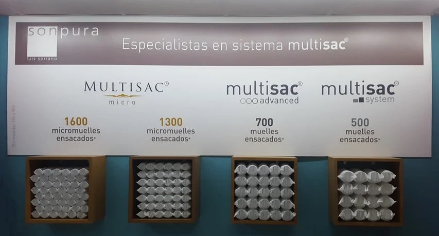 Sonpura es pionero en la fabricación de colchones de muelles ensacados. Ha desarrollado su propia tecnología, el sistema Multisac Micro que añade un mayor número de muelles embolsados. Esta tecnología permite que puedan apoyarse sus colchones de muelles ensacados sobre somieres de láminas sin que sufran ni acaben rompiéndose.