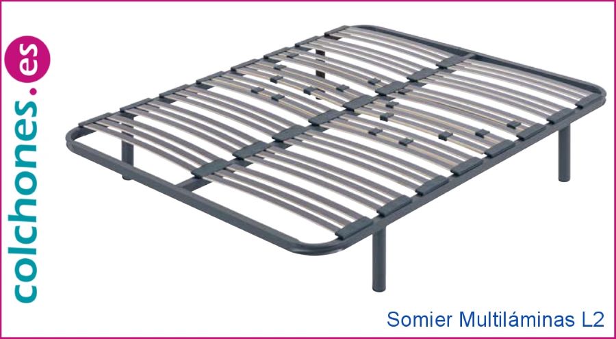 Por lo general, en los somieres de calidad, las patas no van soldadas. Están enganchadas al bastidor con abrazaderas, roscas, tornillos u otros sistemas de fijación. Como es el caso del somier Multiláminas L2 de Colchones.es.