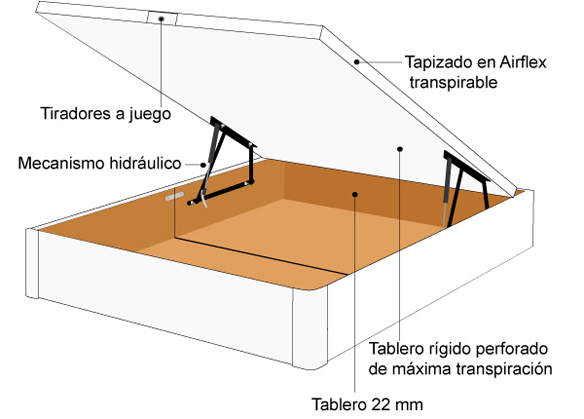 Es fundamental realizar la apertura y el cierre de la tapa con el colchón colocado sobre ella. Los canapés están fabricados pensando en el peso que ejerce el colchón sobre ellos, necesitan esa resistencia para que los sistemas de apertura no se dañen.
