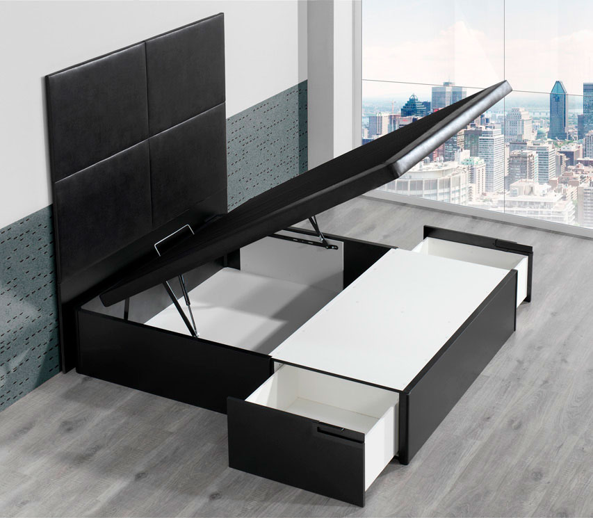 Son todos canapés abatibles con capacidad de almacenamiento de 34 cm, las mayores del mercado. Pero para optar por este fondo útil, se deben elegir en la altura de 43 cm. Estos modelos están disponibles en varias alturas.