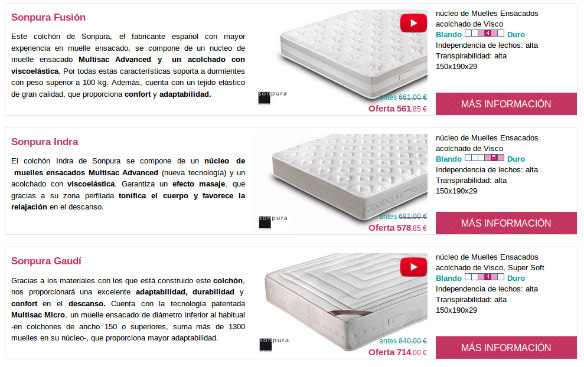 A continuación te facilito el enlace a sus colchones, para que puedas escoger el que se adapte a tus necesidades.