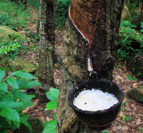El látex natural se vierte, tras un corte oblicuo en un tercio del diámetro de la corteza de un árbol que lo produzca -el más habitual es el Hevea Brasiliensis-. Tras pasar por un adecuado tratamiento se convierte en una materia principalmente elástica, pero también esponjosa, suave y ecológica, de la cual estará hecha el núcleo o los acolchados del colchón.