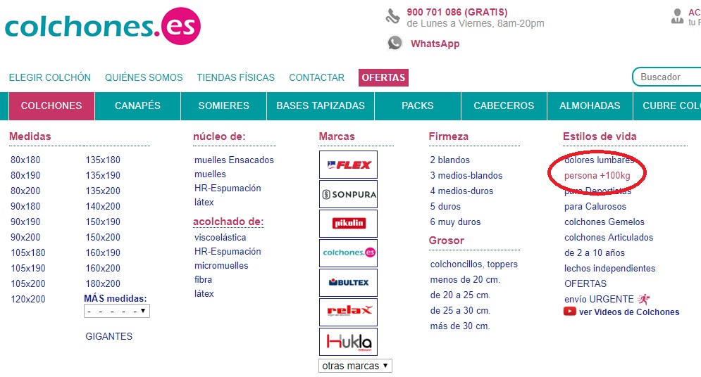 En todos los modelos debes buscar esta indicación en sus características. La llevan todos los colchones que son adecuados para durmientes con peso elevado. Ésta concretamente, es la de un colchón con núcleo de muelles.