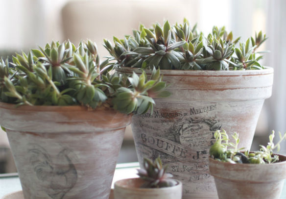 Pero incluso si no tienes nada que comprar, nada que reciclar, puedes hacer que muchas cosas de tu dormitorio parezcan hand made o DIY. Basta con que te acostumbres, por ejemplo, a pintar que no resultan muy originales por sí mismas, por ejemplo una típica maceta de color marrón. Puedes utilizar técnicas como el foto transfer para grabarles imágenes en blanco y negro. El resultado son estas preciosas decoraciones de I do project