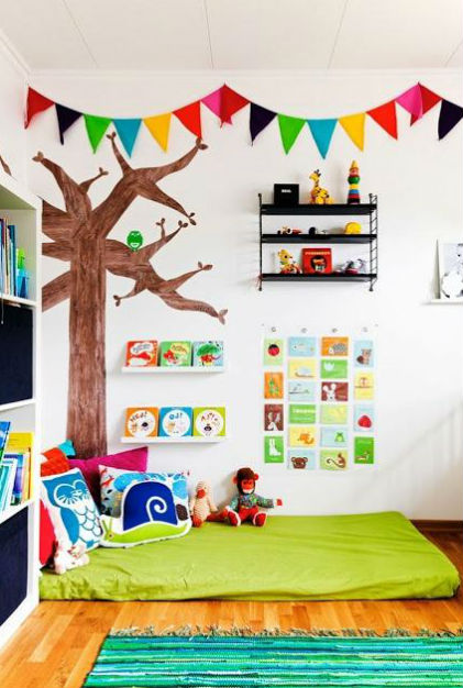 También se pueden poner las típicas letras adhesivas de colores, o incluso juguetes que hayan fabricado ellos mismos al hacer alguna manualidad. Lo más original de estas habitaciones es que todo tiene un aspecto muy natural y al mismo tiempo familiar, algo único porque hay muchas cosas que están hechas a mano.