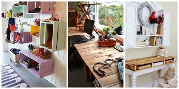 En esta foto podemos ver de nuevo cajas de frutas y palets, en esta ocasión a modo de escritorios o zapateros.