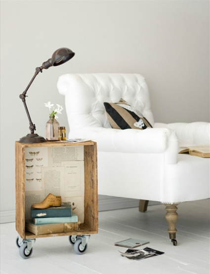 Si lo que necesitamos es una mesita de noche o una mesa auxiliar, podemos también crearla nosotros. Mira que idea tan bonita recoge el blog estiloydeco.