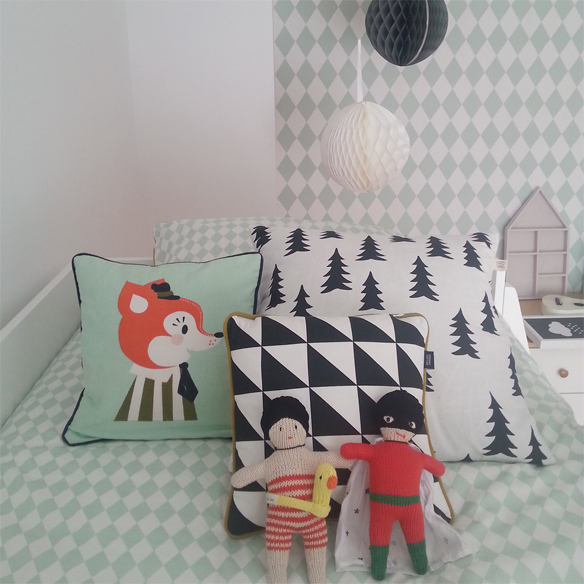 En la tienda podéis encontrar muchos complementos para decorar una habitación infantil. Desde productos para la cama, como fundas nórdicas o cojines, hasta decoraciones para las paredes, como vinilos, láminas y papel pintado. También tenemos una selección de juguetes de cartón muy decorativos, así como juguetes de tela y juegos didácticos. Todo elegido con mucho cariño. Seleccionamos productos con encanto, que reflejan mi pasión por las cosas sencillas pero que aportan singularidad a la habitación de los más pequeños.