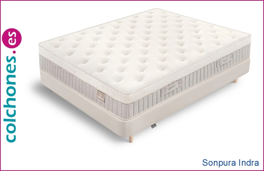 El Sonpura Indra aparece en el ránking de mejores colchones de la OCU en 2018. Su núcleo es de muelles ensacados Multisac Advanced (700 muelles en medida 150×190). Es un colchón de gran firmeza (5 sobre 6). Está acolchado con 1 cm de viscoelástica de 42kg/m3 de densidad, espumación Firmsoja y fibras naturales de algodón y lino.