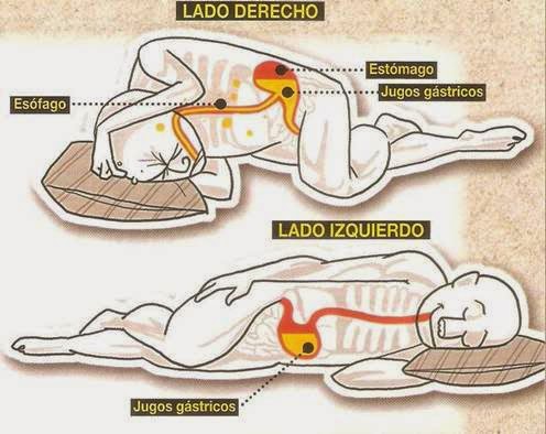 Si padeces de hernia de hiato o fuerte acidez de estómago, es más importante aún apoyarte sobre el lado izquierdo, de forma que el cardias, que es la válvula que abre y cierra el estómago, quede más alejado de los jugos gástricos.