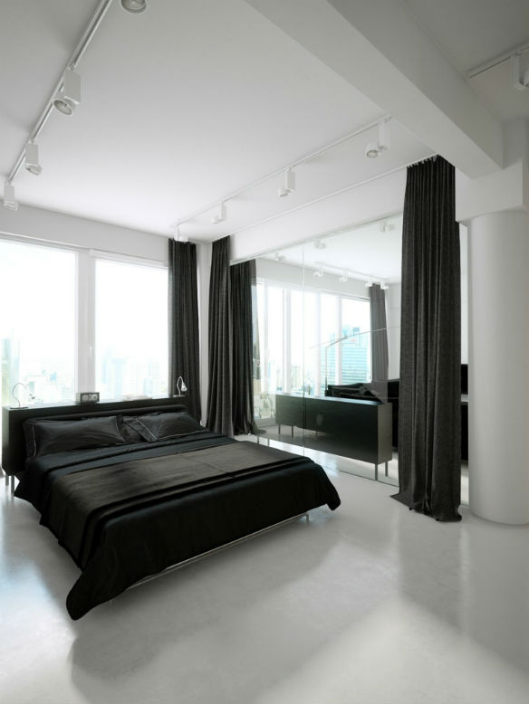 Al igual que los elementos que generen brillo y reflejo son de gran importancia en los sitios con dormitorios blancos, muebles negros, la iluminación adquiere también un protagonismo especial.