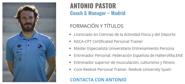 Antonio Pastor, es realmente conocido como «Chiqui» en el gremio del entrenamiento personal (@chiquitrainer en Instagram). Hago deporte y ejercicio físico desde que tengo uso de razón y ahora mismo es mi estilo de vida. Amo mi profesión y estudié Ciencias de la Actividad Física y del Deporte (INEF) en la Universidad Complutense de Madrid.
