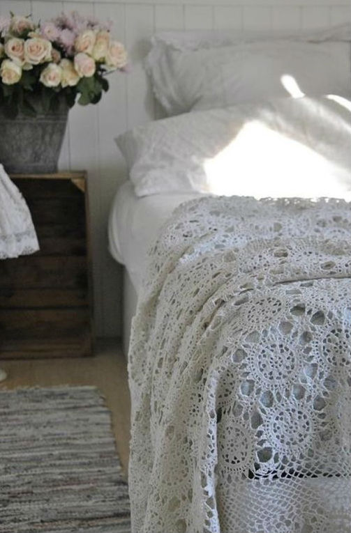 Utilizaremos colores claros y tonos pastel, se pueden utilizar estampados y elementos de ganchillo, pero dando una imagen suave, que combine con los colores de las paredes y deje a los muebles ser los verdaderos protagonistas de la estancia. En estos dormitorios de decoración romántica vintage de Dicoro se apuesta por los encajes y telas de tul para transmitir una imagen suave y serena.