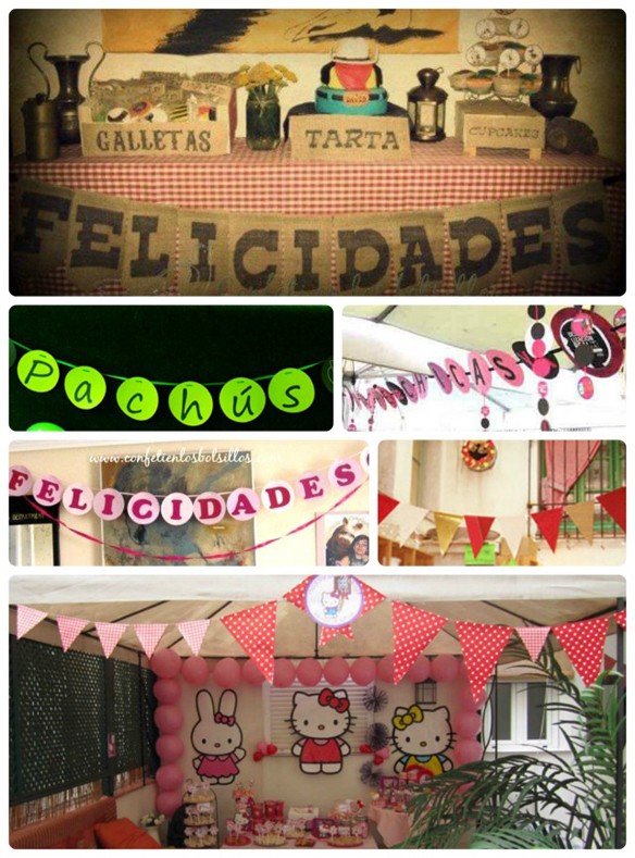 Últimamente son tendencias los banderines, los pompones… Y creo que el nombre del cumpleañero al menos para mí es importante. Ya sea escrito en los banderines o con las letras de madera o cartón.