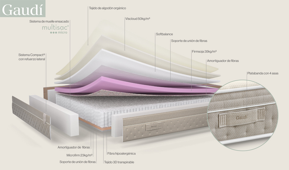El colchón Gaudí es uno de los colchones estrella de la firma. La OCU lo ha nombrado varios años seguidos como el mejor colchón de muelles ensacados.