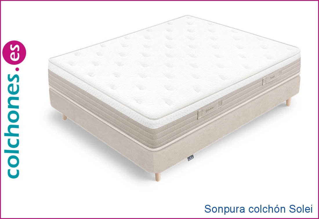 El modelo Solei de Sonpura. Un diseño renovado que proporciona una ergonomía perfecta gracias a su núcleo de sistema Multisac, que al ser muelles ensacados individualmente se adaptan al cuerpo.