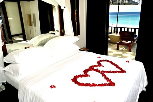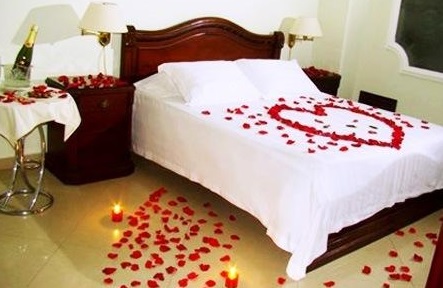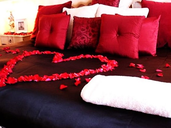 Más allá de que la cama resulte cómoda e irradie una bonita apariencia, importan mucho los alrededores de la cama. Todo debería estar lo más ordenado y limpio posible. Pero además, podemos colocar adornos alrededor de la cama, como por ejemplo una pequeña guirnalda de corazones. Es lo que nos muestran en Opendeco, donde además se aprecian otros detalles de adorno, como colocar unas rosas rojas en la mesita de noche.