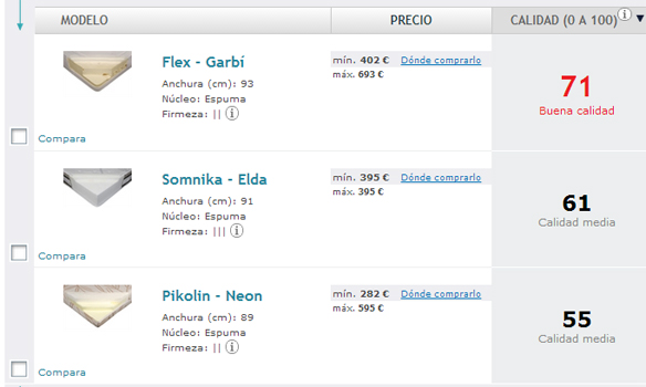 En este caso, los mejores colchones según la OCU de espuma son 3, los podéis ver en la foto. En el caso del colchón Flex Garbí (ahora sustituido por el modelo equivalente -sólo cambia la tapicería- Flex Garbí Visco) lo puedes adquirir en la tienda online de Colchones.es.