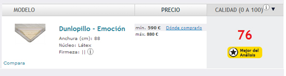 Para este material, la OCU recomienda el colchón Dunlopillo Emoción, que también es el que más puntuación ha obtenido en el global del análisis de 23 colchones.