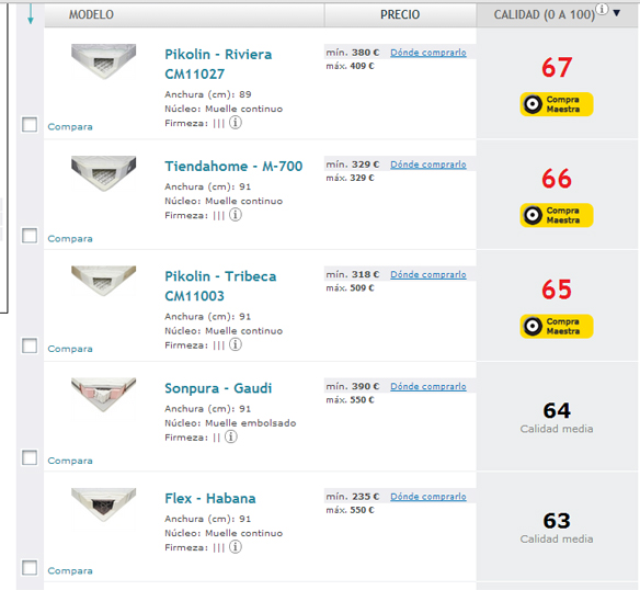 Publicado en Colchones, OCU Etiquetas: colchon fusion sonpura | colchón gaudí sonpura | colchon nube visco gel | comparador colchones | mejores colchones | OCU | ránking colchones
