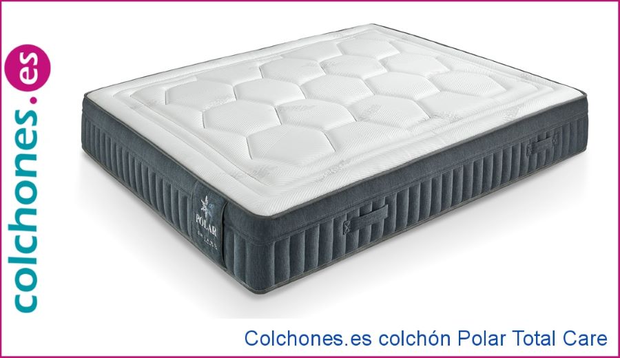 El colchón Polar Total Care de Hilding cuenta con un núcleo de muelles ensacados dispuestos para aportar hasta cinco zonas de confort diferenciadas. Su firmeza es medio baja de 3 sobre 6. Este colchón está reforzado por todo el perímetro con espumación HR de 30 kg/m3 de densidad que permiten que soporte pesos de hasta 140 kg.